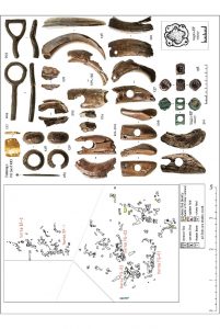 В ходе полевых работ ученые нашли на территории кургана Туннунг-1 останки 18 лошадей в виде трех скоплений и останки нескольких человек. Несмотря на плохую сохранность, ученые смогли понять, что кости лошадей располагались в анатомическом порядке, а рядом с зубами и фрагментами черепа было обнаружено снаряжение. Таким образом археологи предположили, что животные были принесены в жертву непосредственно на месте. А обнаруженные под ними фрагменты дерева позволили полагать, что они располагались в центре кургана в виде сложных инсталляций на платформе из дерева. Ученые определили пол 10 лошадей. Все они оказались самцами. Большинству лошадей от девяти до 15 лет.