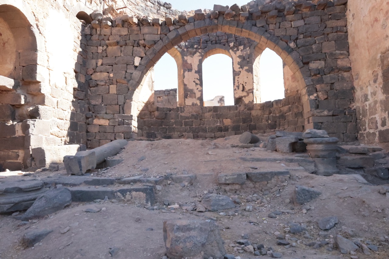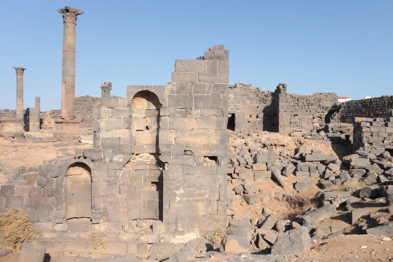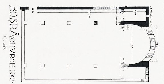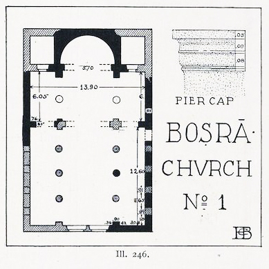 От византийского периода в Босре сохранилось в настоящее время только две церкви. Базилика № 1, которую видел У. Батлер в начале ХХ в., скрыта новой застройкой между дворцом и цистерной, а попытки отождествить виденную им же базилику № 3 с апсидой на перекрестке главных улиц наталкиваются на несходство размера и формы, так же, как и попытка увидеть церковь в колонном портике напротив, где апсида относится к римской постройке.