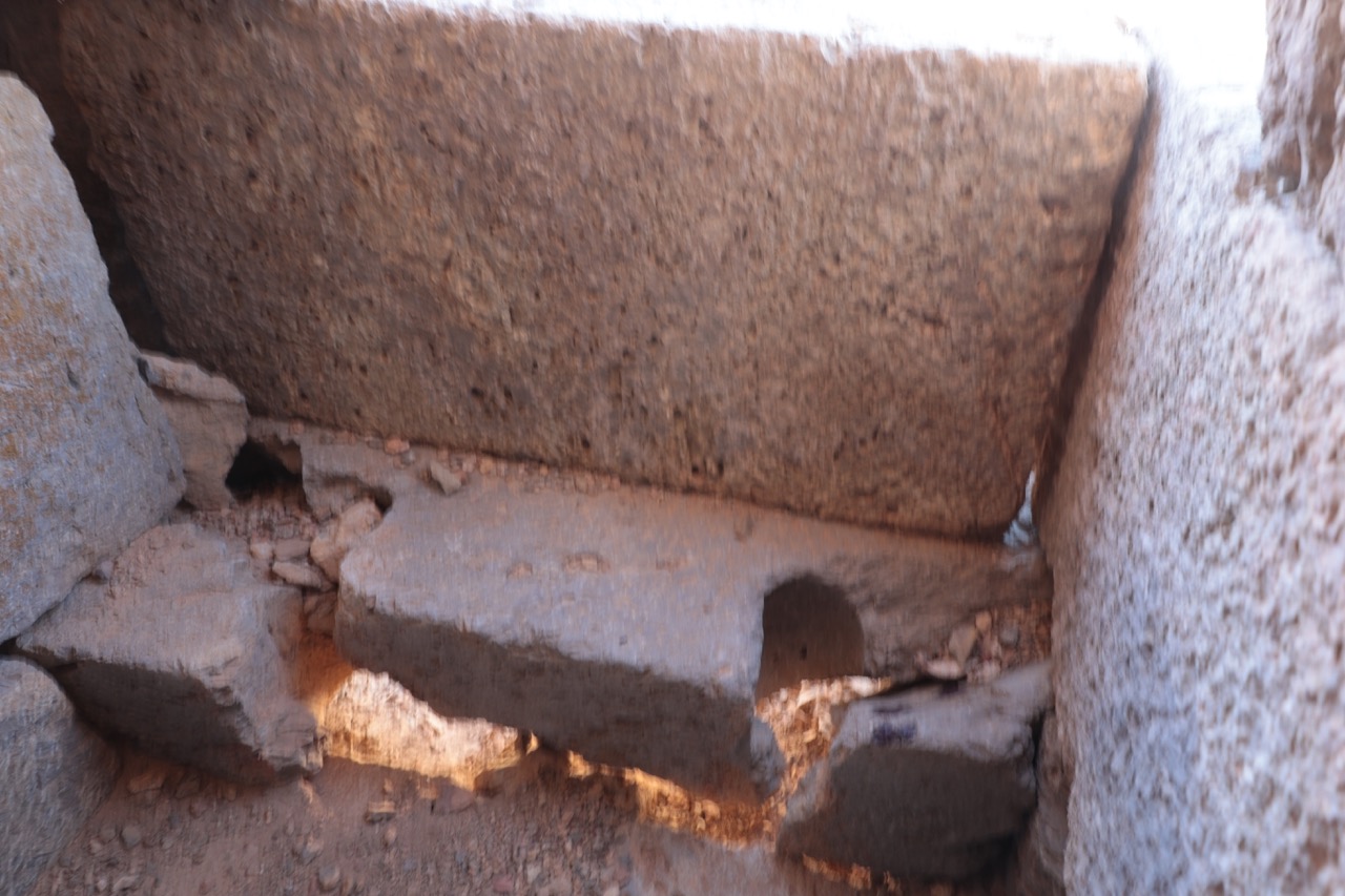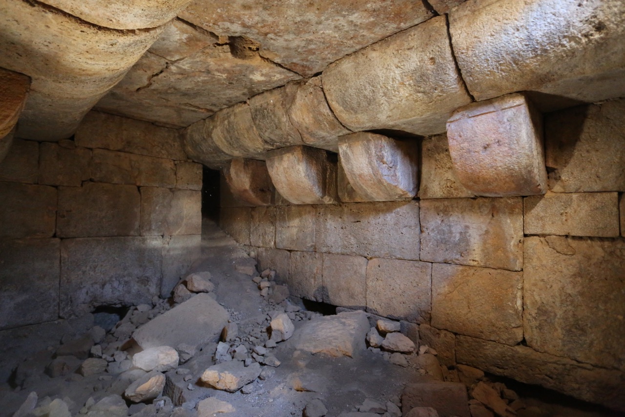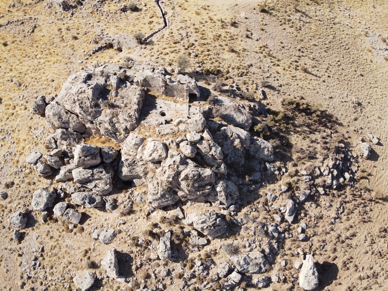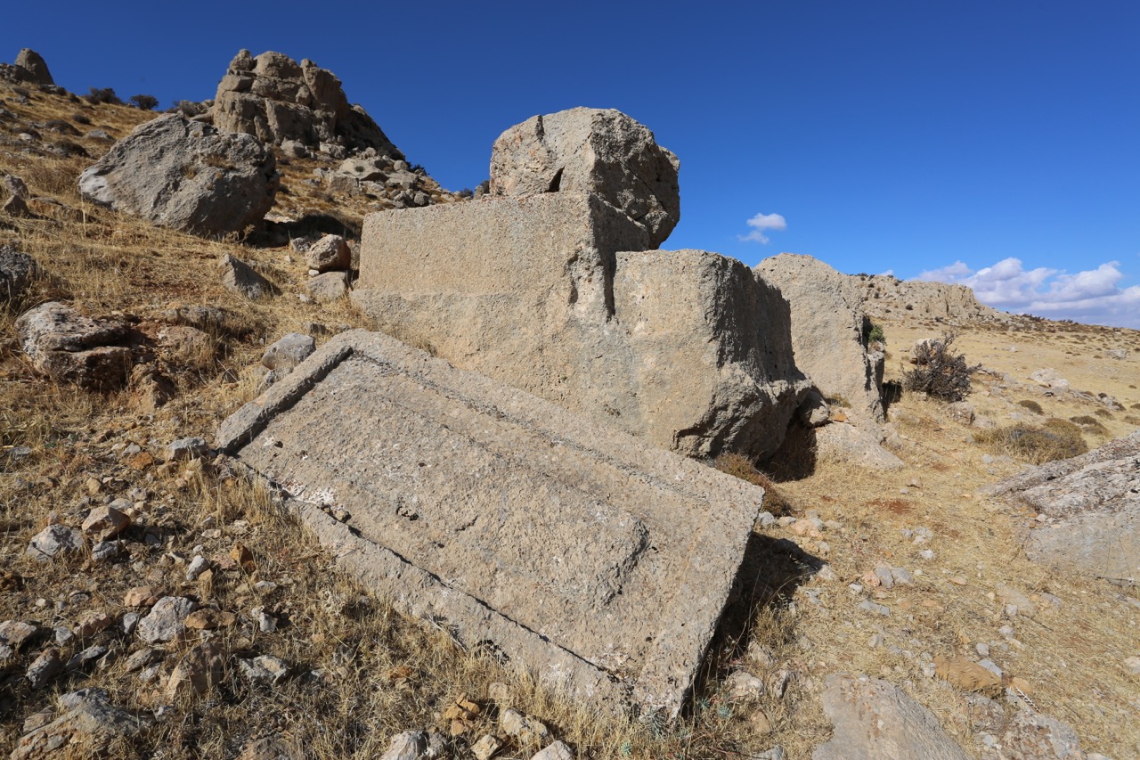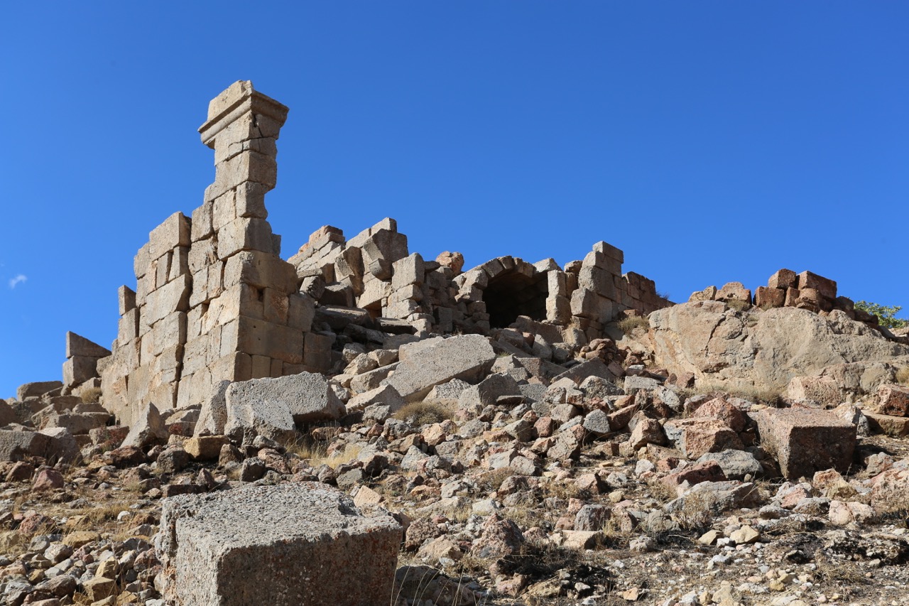 Комплекс возник как римское святилище. Выше по склону был поставлен небольшой храм со вписанной в прямоугольный абрис апсидой и пастофориями, ориентированный на север. Портал украшен резьбой. Стены храма стоят на высоту около 5 м, но восточная часть и вход разрушены.