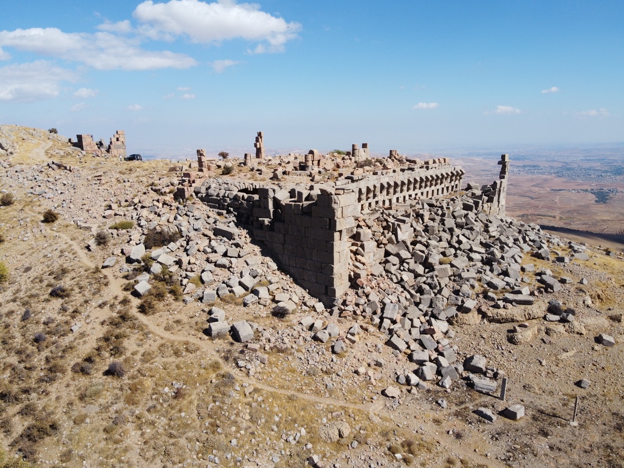 Ниже по склону, на широкой террасе, созданной при помощи субструкций, был воздвигнут большой римский храм, ориентированный на восток. В его мощных субструкциях размещалось несколько помещений с плоскими перекрытиями, в том числе цистерна и латрина (общественный туалет). Храм был украшен богатой резьбой.