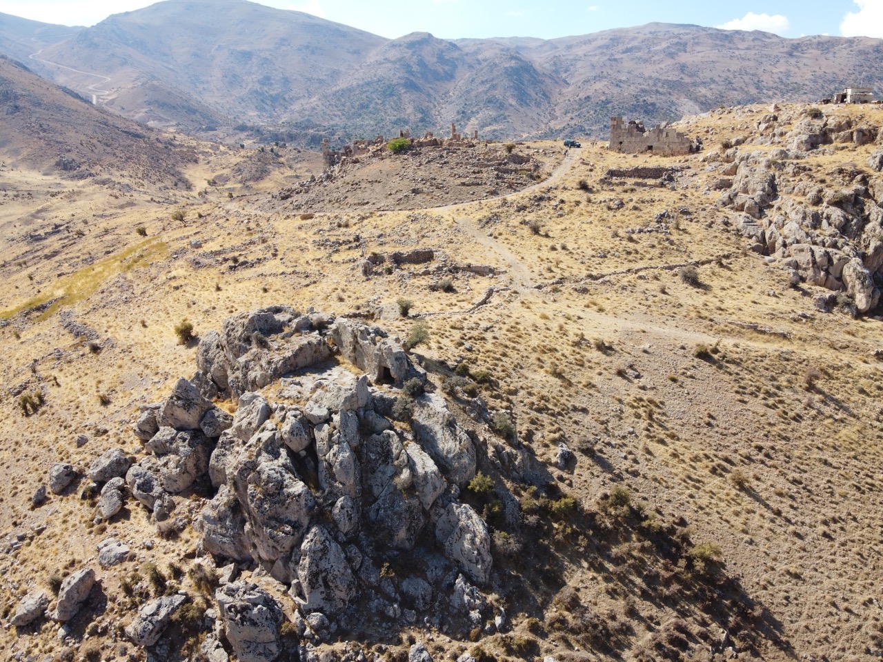 Неподалеку от селения Буркуш, к западу от Дамаска и в 4 км от границы с Ливаном, в горах находится комплекс римских и византийских построек. Он расположен на склоне горы, составляющей часть горного массива Ермон. Комплекс был открыт немецкой Баальбекской экспедицией в 1903 году и исследован и обмерен в 1999 году немецкой экспедицией под руководством Г. Брандса, которая установила, что памятник частично разрушился по сравнению с началом ХХ века. Во время гражданской войны на территории памятника были устроены окопы, однако следов повреждений от боевых действий не наблюдается. В настоящее время на вершине горы, рядом с комплексом, находится погранзастава.