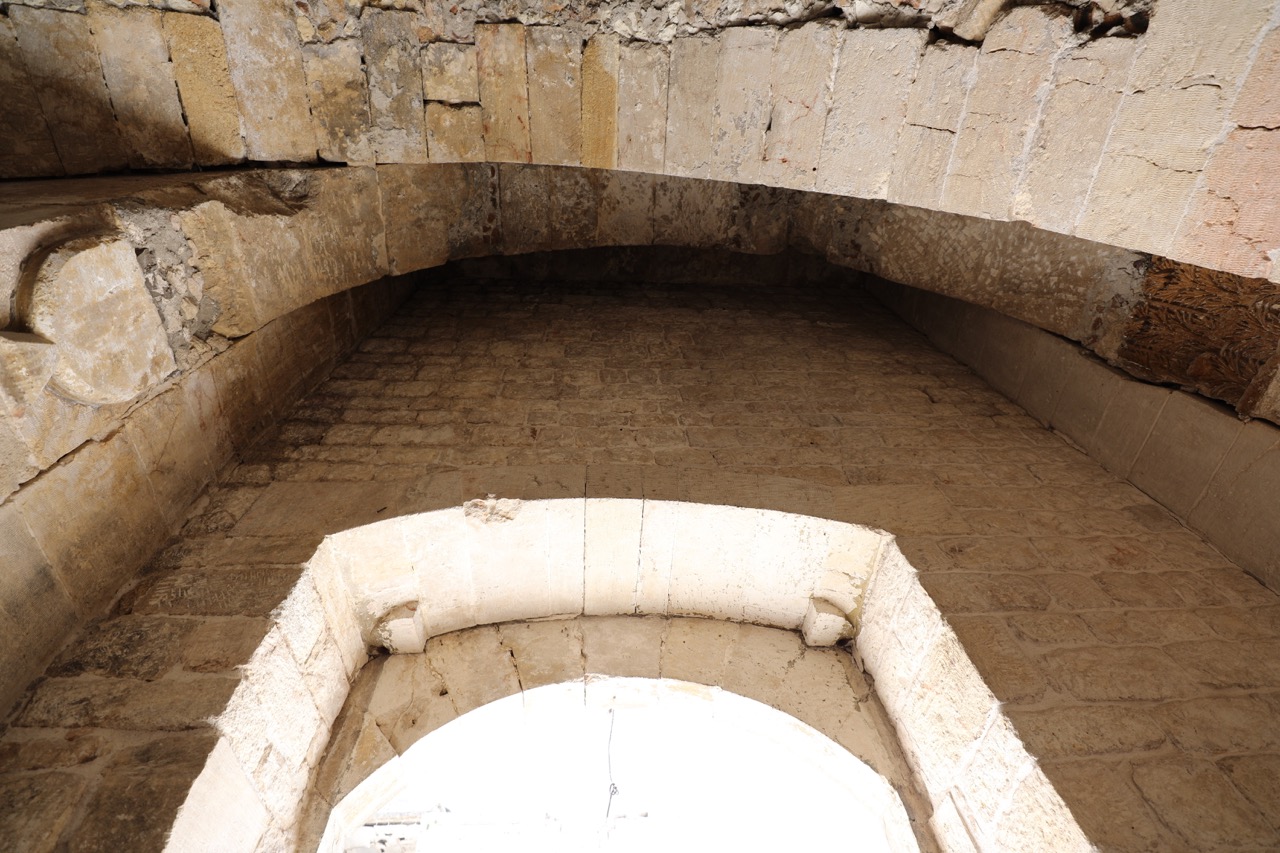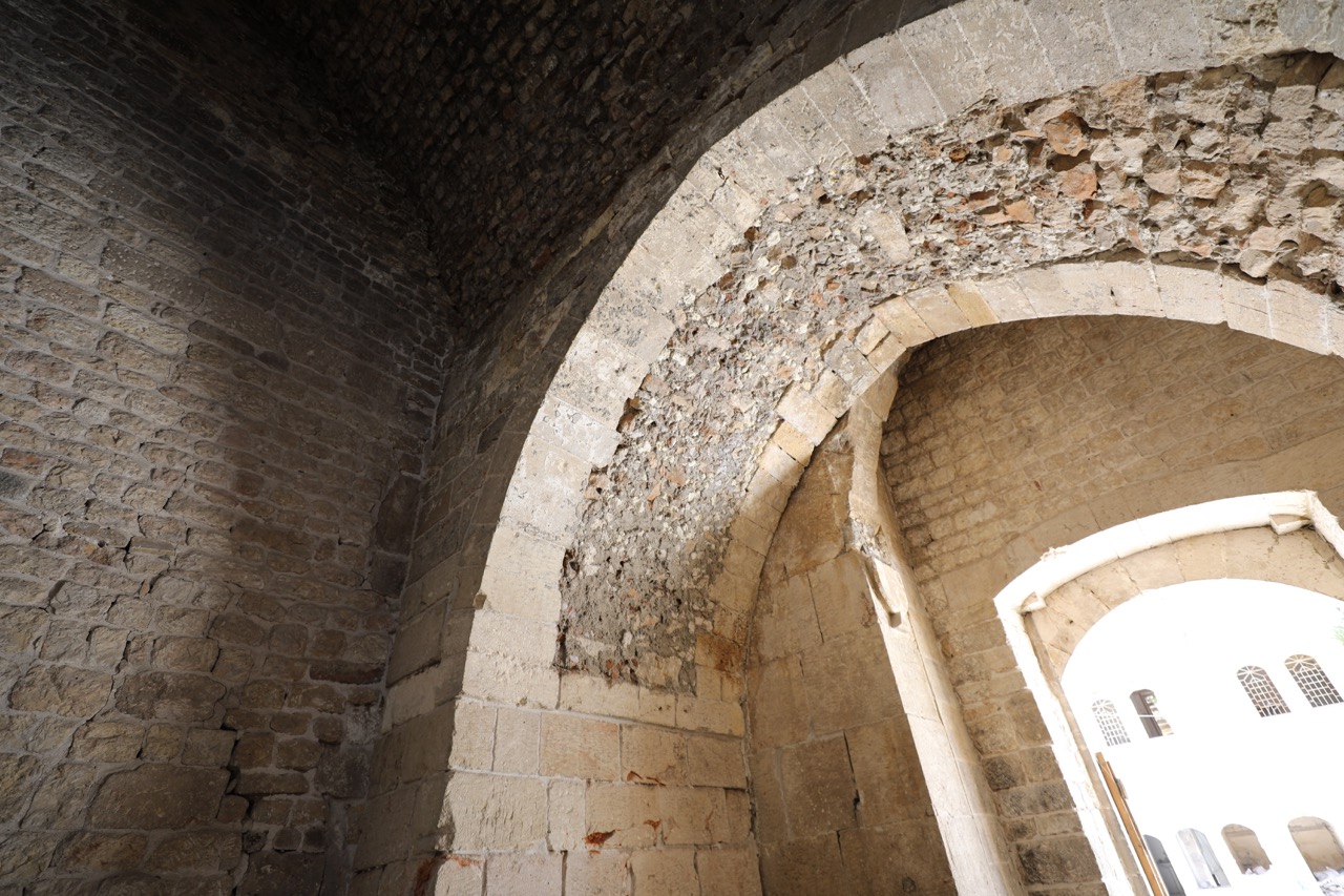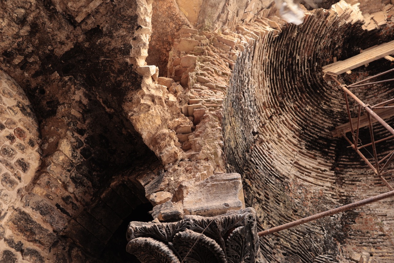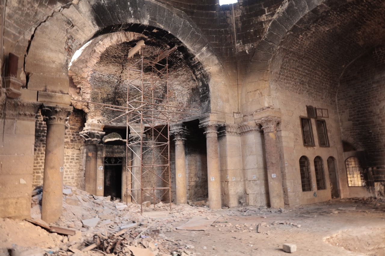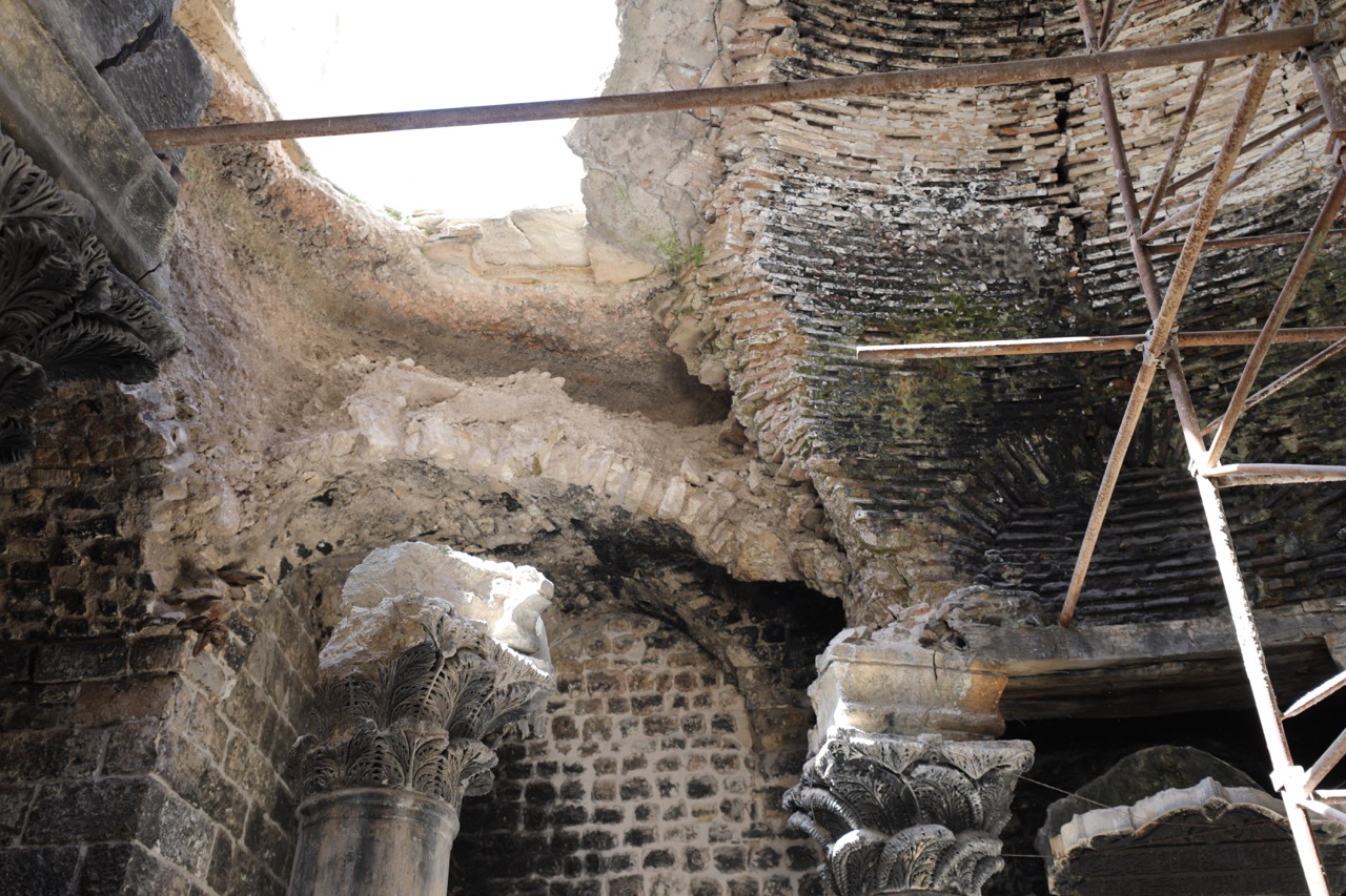 Остальные части комплекса относятся к исламскому периоду, включая все перекрытия здания. Конха западной экседры сложена из мелкоформатного плоского кирпича, ее основание деревянное, внешние стены не соответствуют контуру экседры, в подпружных арках использована кладка «аблак» (с Ϟ-образными боковыми краями), продолжение у консолей на столпах отсутствует, в кладке арки вторично использована ранневизантийская деталь — все это указывает на капительную перестройку здания в XII в. Полная перестройка верхней части экседры позволяет отнести отмеченный К. Штрубе поворот некоторых капителей и карнизов не к ранневизантийской, а к исламской перестройке. Двор и остальные помещения комплекса (тоже частично поврежденные войной) — также типичный памятник айюбидской архитектуры.