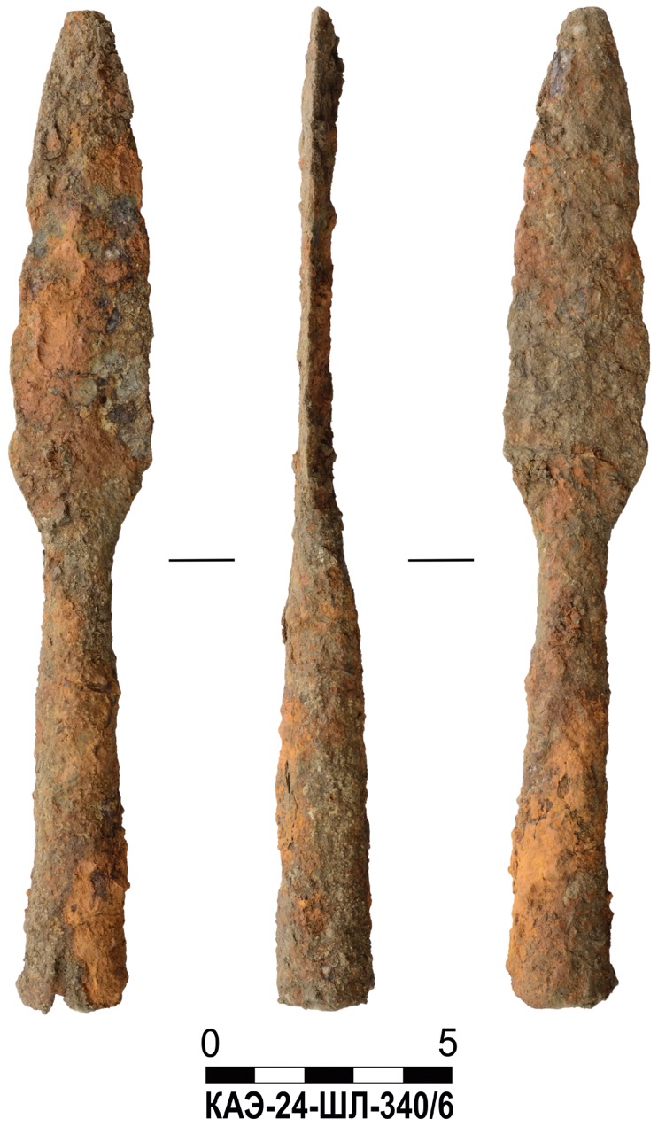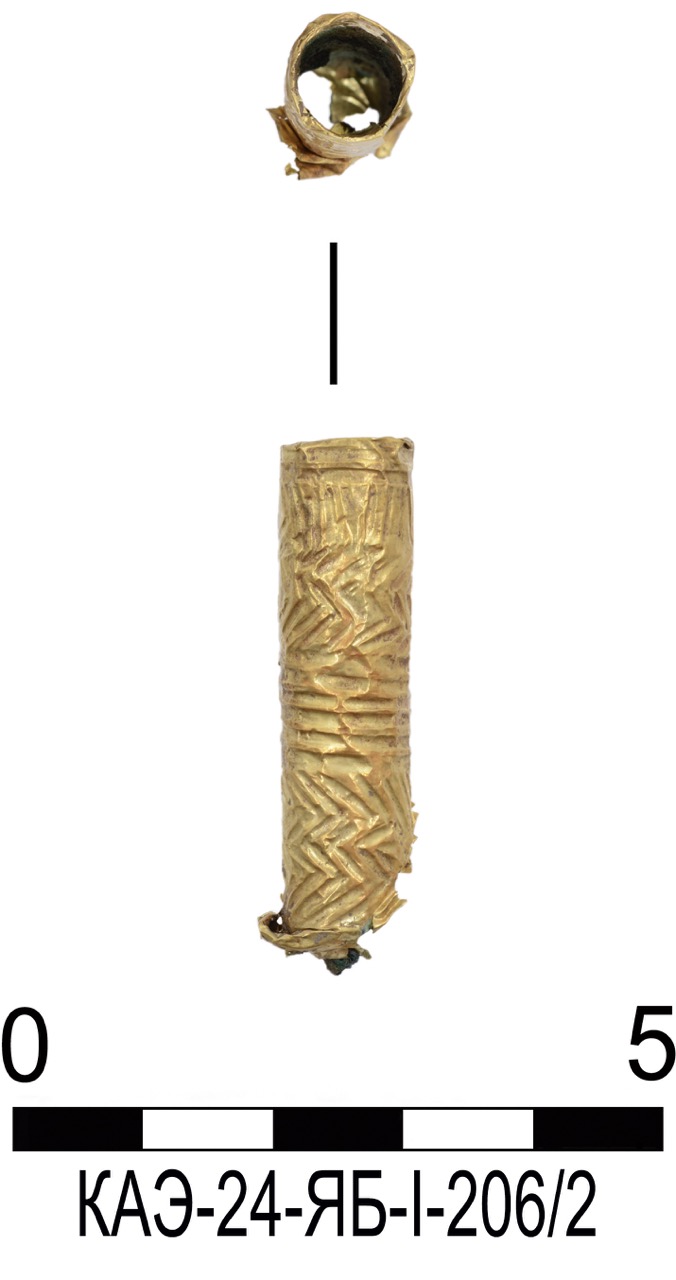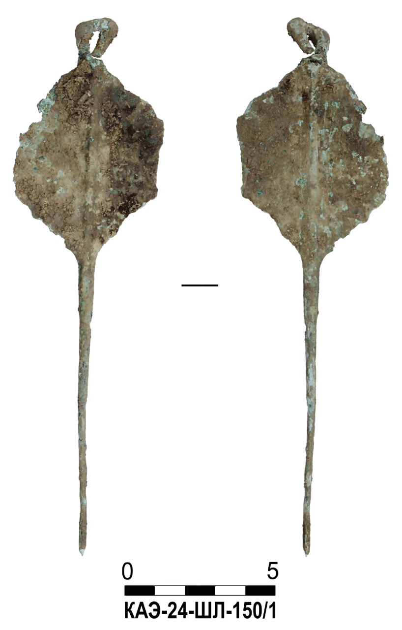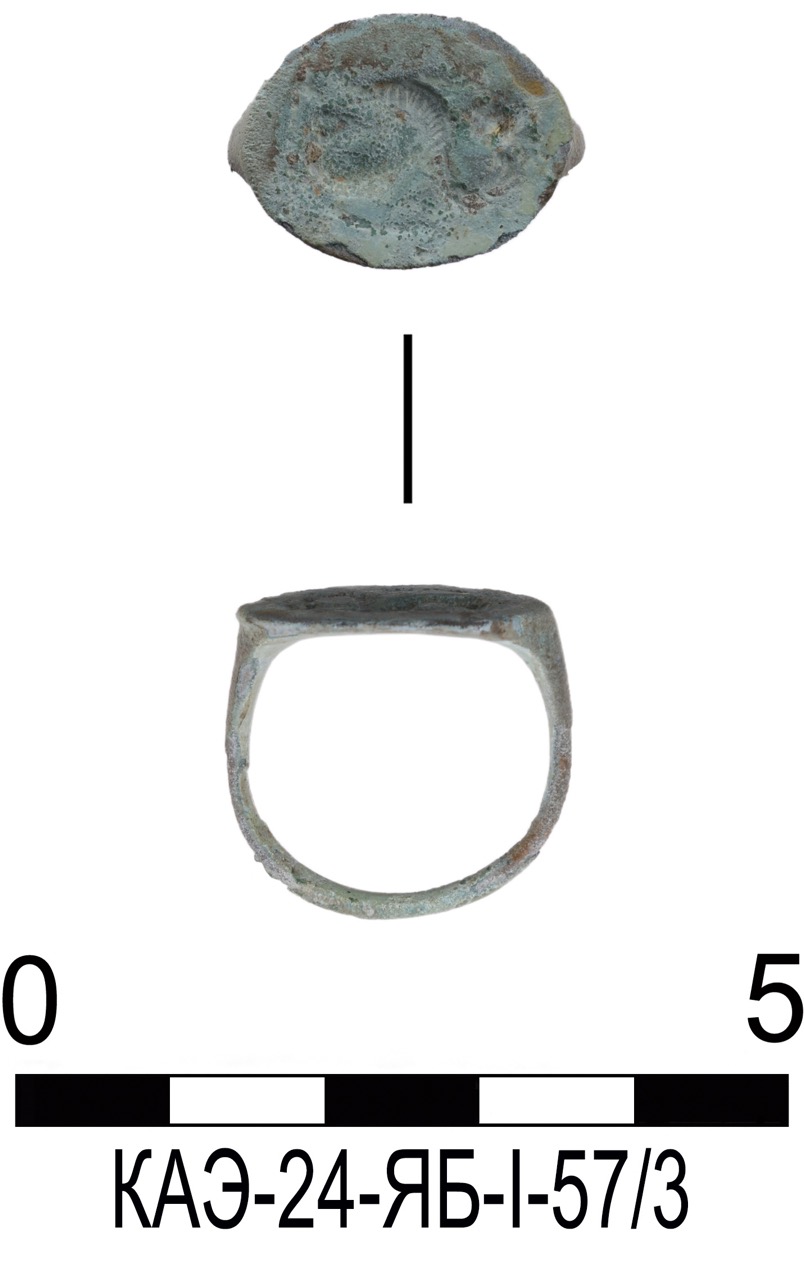 В качестве примера приведем всадническое погребение (объект 195) – грунтовое захоронение мужчины с лошадью. Могила была ограблена в древности, череп отсуствовал. Погребенный лежал вытянуто на спине, головой на северо-запад. В ногах найдены остатки заупокойной трапезы. В составе сохранившегося погребального инвентаря представлены две золотые монеты, железная пряжка с квадратной рамкой, бронзовые пряжка и кольцо, стеклянный бальзамарий. В сопровождавшем его захоронении лошади найдены 14 бочковидных и цилиндрических меловых бусин-пронизей, вероятно нанизанных на поводья. Еще две биконические бусины из золотой фольги обнаружены возле конского черепа. Здесь же сохранились железные удила с колесовидными псалиями, распространенные у меотов Кубани и Дона во II в. Также найдена подбрюшная железная пряжка.