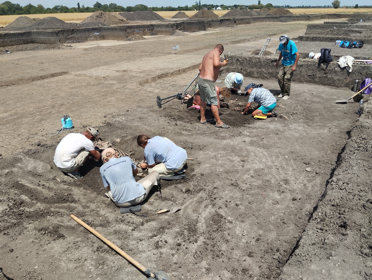 Поселение Шептальское Левобережное. Общий вид раскопок и рабочие моменты