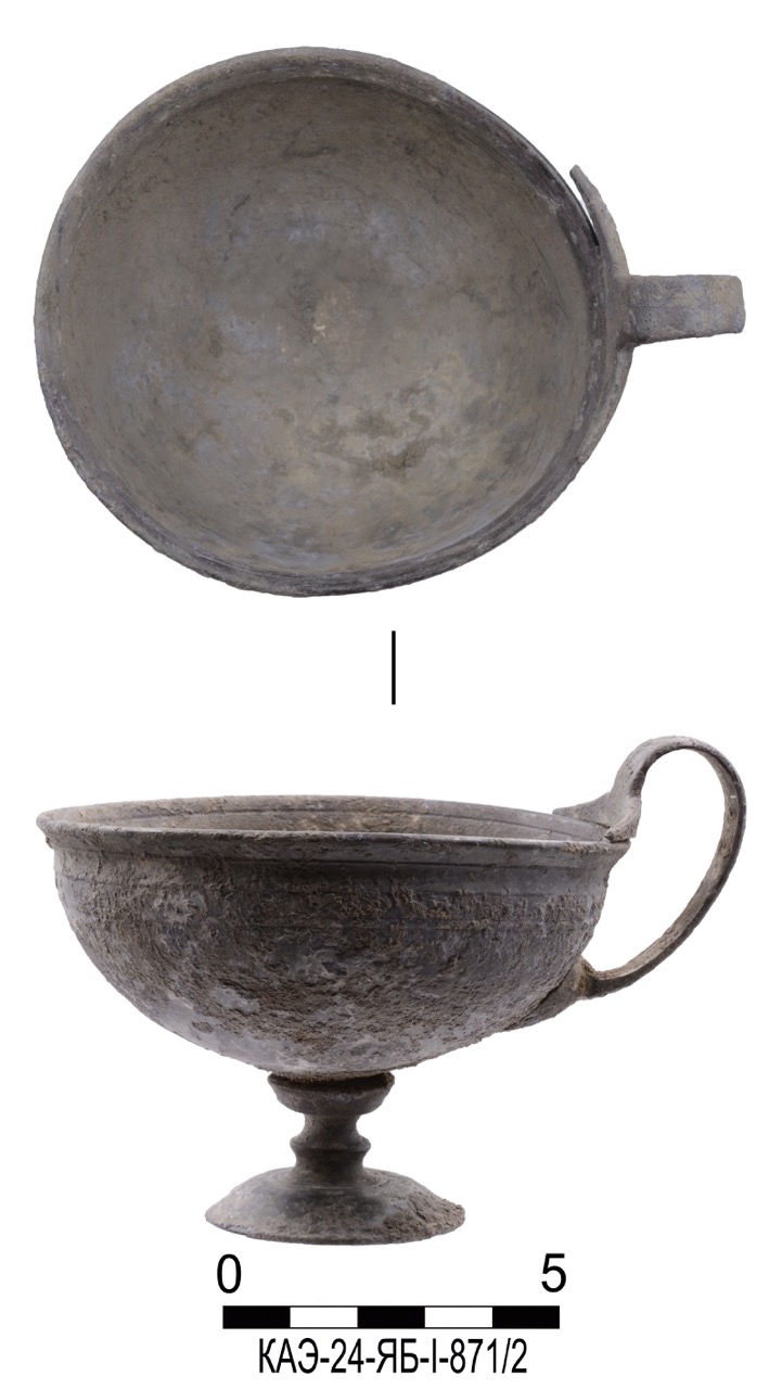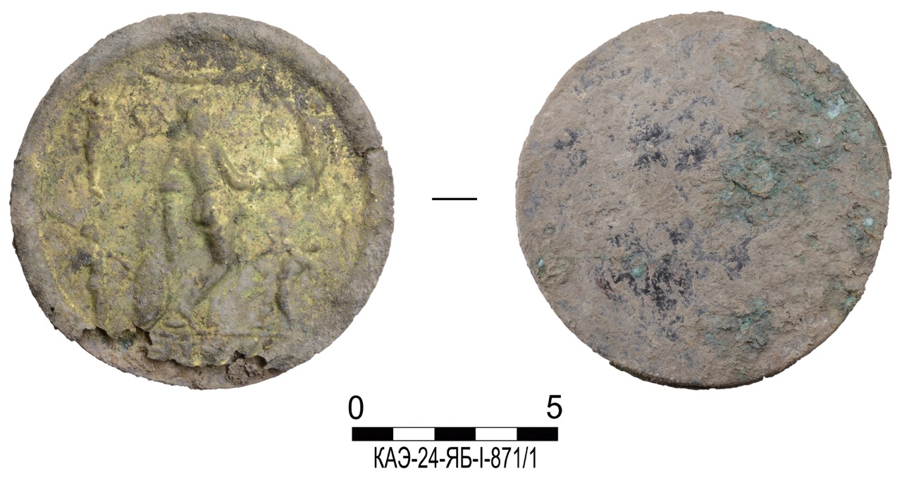 Обнаруженные в погребении монеты (рис. 13, 14) очень хорошей сохранности, что свидетельствует о том, что до момента тезаврации они находились в обращении не больше двух–трех лет. Они указывают на тесные связи населения Прикубанья с Боспорским царством и проливают свет военно-политическую историю этого региона и в целом Северного Причерноморья. После гибели в 63 г. до н.э. понтийского царя Митридата VI Евпатора Боспорское царство оказалось вовлечено в орбиту римской геополитики, и на рубеже эр превратилось в государство-клиента, впрочем, не без выгоды для себя. В середине I в. до н. э. в римско-боспорских отношениях окончательно сложилась практика, согласно которой новый царь, утверждавшийся в Риме, получал титул «друг цезаря и друг римлян», а также инсигнии, символизировавшие признание царского титула. Монетное дело Боспора также претерпело определенные изменения, так чеканка римского времени состояла главным образом из царских монет, выпускавшихся в золоте и меди. Внешний вид боспорских статеров I в. определялся исключительным правом Рима на выпуск золота, поэтому на лицевой стороне изображались римские императоры, а имена и титул собственно боспорских правителей скрыты в монограммах на реверсе. При Тите (79–81 гг.) боспорские цари получили право размещать свои портреты с развернутой титулатурой на аверсе. Таким образом, сформировавшийся при Рискупориде I (69–91/92 гг.) в 80-х гг. внешний вид золотых монет сохранился до конца существования боспорской чеканки. С конца первой половины III в. происходит постепенное уменьшение золотого содержания в металле статеров, завершающееся превращением их в чисто медную монету. Найденные на поселении Ястребовское-Бережное 1 статеры Евпатора и Савромата II относятся к «классике» золотой чеканки Боспора римского времени, когда внешний облик монеты – тщательность и гармоничность изображений – вполне коррелировались с ее металлическим содержанием.