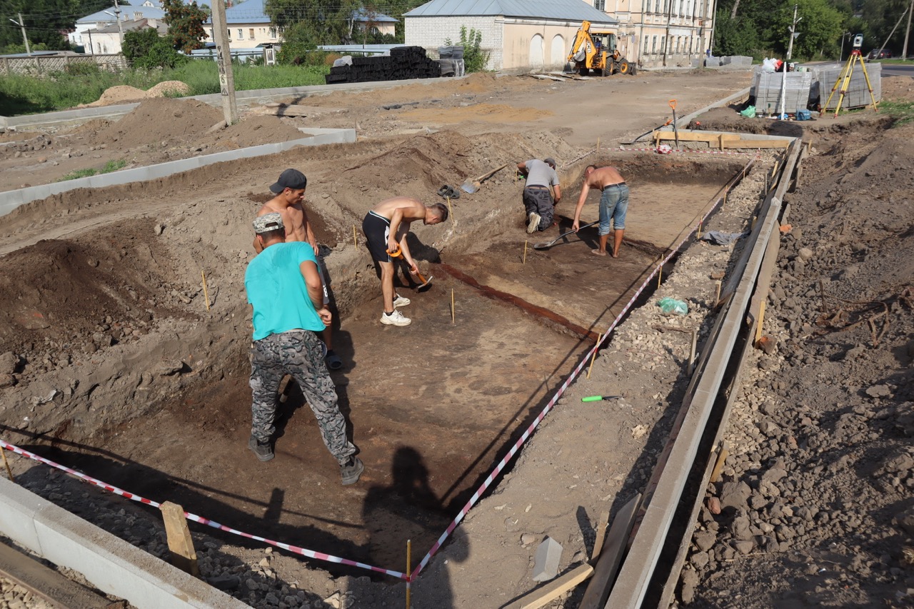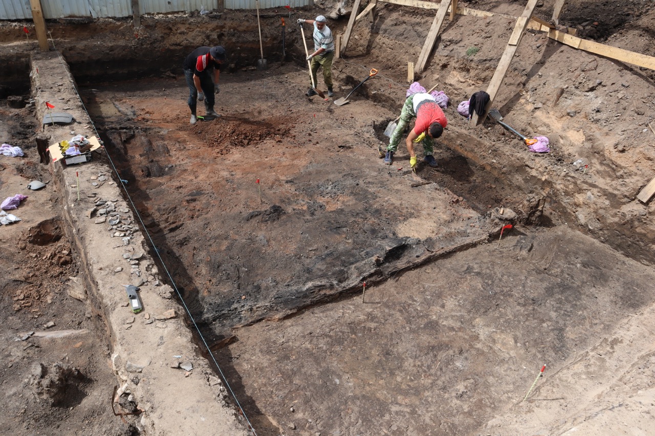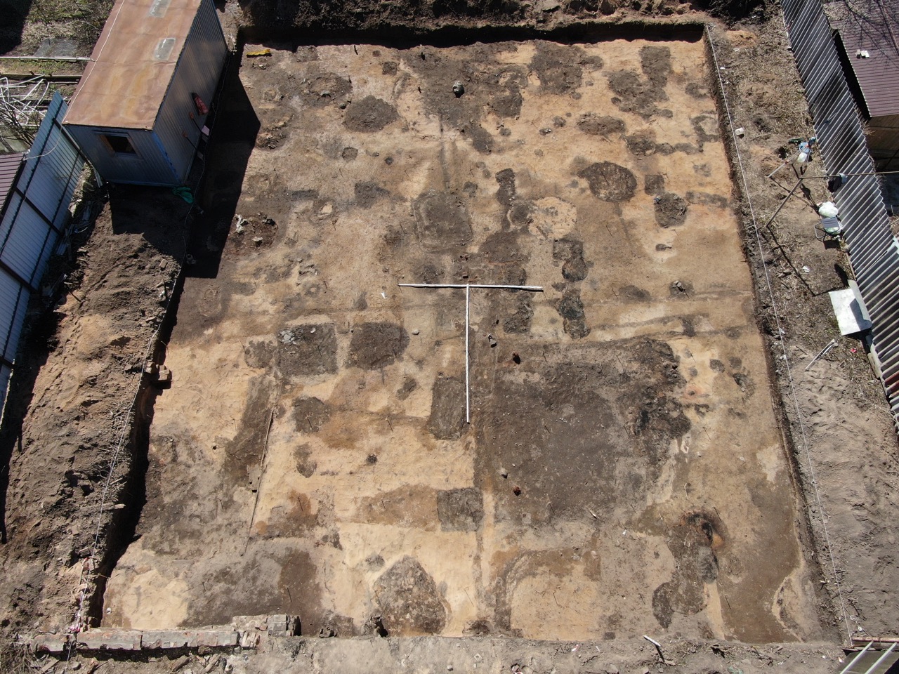 В полевой сезон 2023 года были завершены археологические наблюдения, связанные с благоустройством центральной части города Кашина. Кашин – один из старейших городов Тверской области. Дата его основания неизвестна, но первые письменные упоминания о нем содержатся в Никоновской летописи под 1238 годом. В период с 1316 по 1426 годы – Кашин – центр самостоятельного уездного княжества с собственным кремлем, войском и чеканкой монеты. Проведенные археологические работы впервые позволили проследить этапы формирования исторического посада. В результате раскопок и археологических наблюдений были выявлены следы средневековой улицы, обжитой с XIII по XVII века. Несмотря на то, что многие обнаруженные постройки приходили в запустение, на их месте впоследствии отстаивалось новое жилье. В совокупности с обнаруженными границами участков, можно говорить о существовании своеобразного «кадастрового» деления в центральной части Кашина, уже в период средневековья. Кроме этого, работами была определена западная граница кладбища, связанного с функционированием церкви Рождества Богородицы на Болоте. Данная церковь являлась первой в городе, отстроенной в камне уже в 1690 году, была утрачена в 1930-е годы.