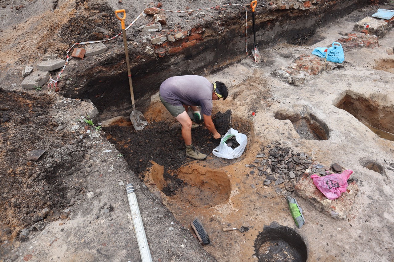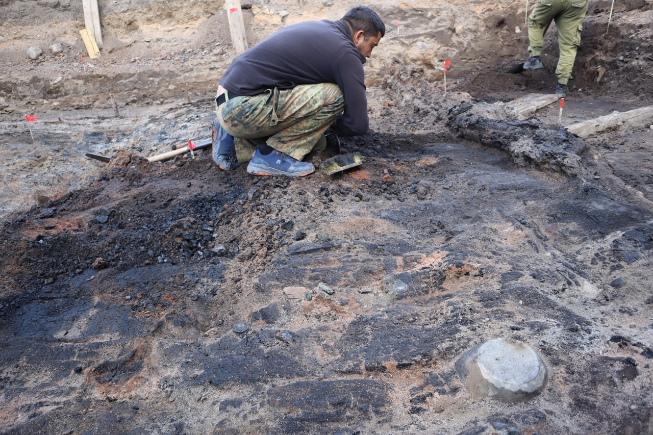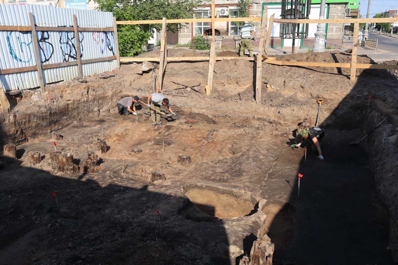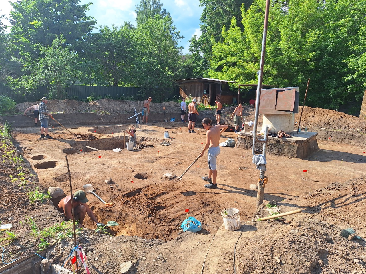 В полевой сезон 2023 года были завершены археологические наблюдения, связанные с благоустройством центральной части города Кашина. Кашин – один из старейших городов Тверской области. Дата его основания неизвестна, но первые письменные упоминания о нем содержатся в Никоновской летописи под 1238 годом. В период с 1316 по 1426 годы – Кашин – центр самостоятельного уездного княжества с собственным кремлем, войском и чеканкой монеты. Проведенные археологические работы впервые позволили проследить этапы формирования исторического посада. В результате раскопок и археологических наблюдений были выявлены следы средневековой улицы, обжитой с XIII по XVII века. Несмотря на то, что многие обнаруженные постройки приходили в запустение, на их месте впоследствии отстаивалось новое жилье. В совокупности с обнаруженными границами участков, можно говорить о существовании своеобразного «кадастрового» деления в центральной части Кашина, уже в период средневековья. Кроме этого, работами была определена западная граница кладбища, связанного с функционированием церкви Рождества Богородицы на Болоте. Данная церковь являлась первой в городе, отстроенной в камне уже в 1690 году, была утрачена в 1930-е годы.