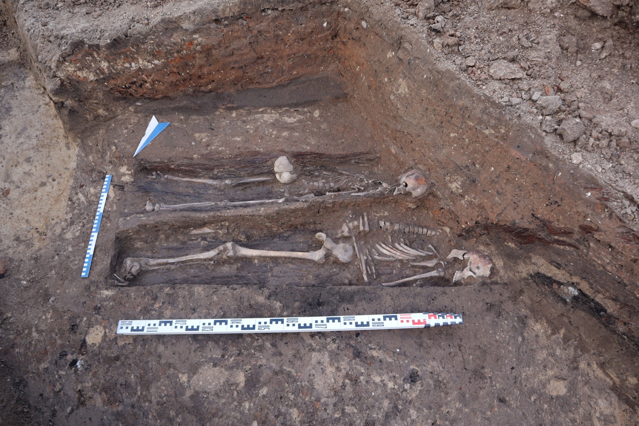 Всего было изучено 27 погребений, содержавших остатки покойных, захороненных по христианскому обряду без сопроводительного инвентаря. Предварительно, обнаруженное кладбище, по всей видимости, следует связывать с землями Григорьевского-Богословского монастыря, существовавшего с XV до начала XVII в. близ берега реки Тьмака на расстоянии около 150 метров к юго-востоку от участка обследования. В центральной и восточной частях раскопа были выявлены остатки подпольных частей, как минимум, 3-х построек, датирующихся XV-XVI вв. Одна из них, по всей видимости, является жилой, другая – меднолитейной мастерской (в заполнении обнаружено большое количество однотипных заготовок нательных крестов и отходы производства), третья – небольшой хозяйственной постройкой. Все они, предположительно, относятся к территории одной усадьбы, ограниченной линиями частоколов. К территории данной усадьбы также относятся остатки кирпичной печи, в заполнении которой была обнаружена монета второй половины XV в. Двор выявленного комплекса огорожен частокольными канавками, направление которых соответствует направлению средневековой уличной планировки Затьмацкого посада. В юго-восточной части территории обследования, на раскопе 2 был выявлен культурный слой XVIII-XIX веков, отражающий историю застройки 1-ой Покровской улицы в соответствии с «регулярным» планом строительства города конца XVIII в. Всего, а ходе исследований на общей площади около 1500 кв. м. была получена коллекция, насчитывающая более 16500 археологических артефактов.